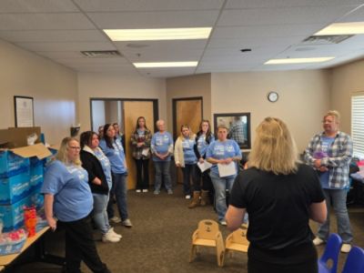 The Neighborhood connection is a local charity that distributes over 800 take home bags for elementary aged students that need help over the weekend while they aren't in school. These bags are filled with food and other items to make sure they get the healthy nourishment that they need. We had the opportunity to volunteer and help stuff these bags.